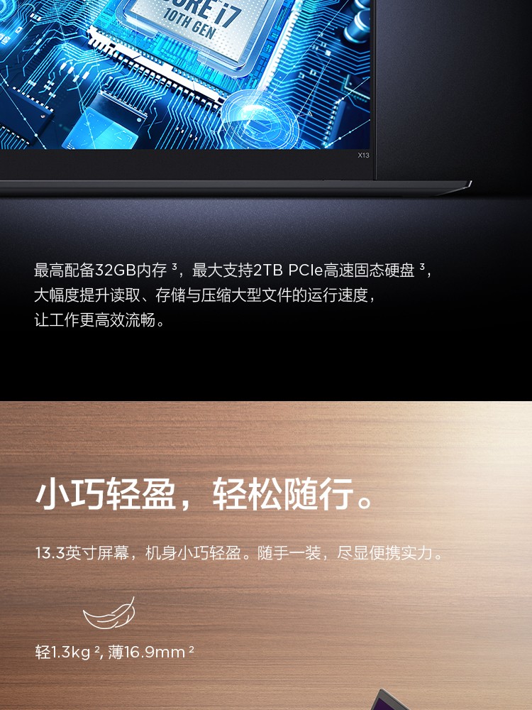 联想ThinkPad X13 酷睿版 十代英特尔酷睿i5/i7 13.3英寸商务办公轻薄笔记本电脑 十代i5 8G 512G 5SCD 4G版