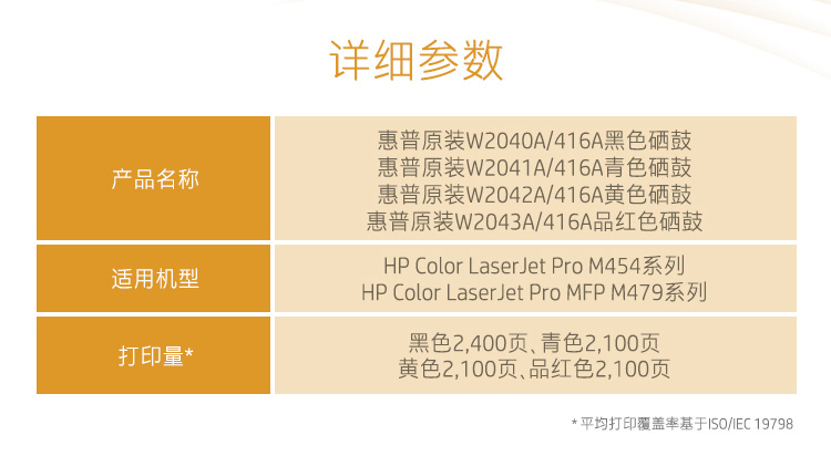 惠普(HP)W2042A 416A原装黄色硒鼓 适用hp m454dw 454dn 479dw 479fdw 打印机硒鼓