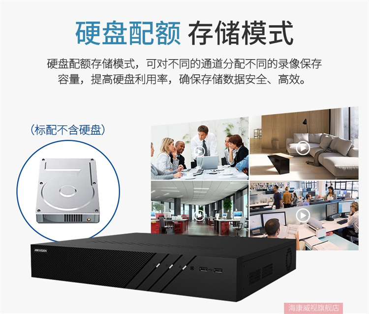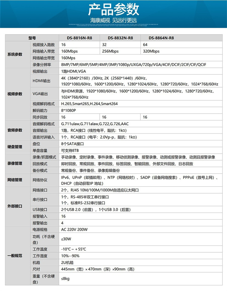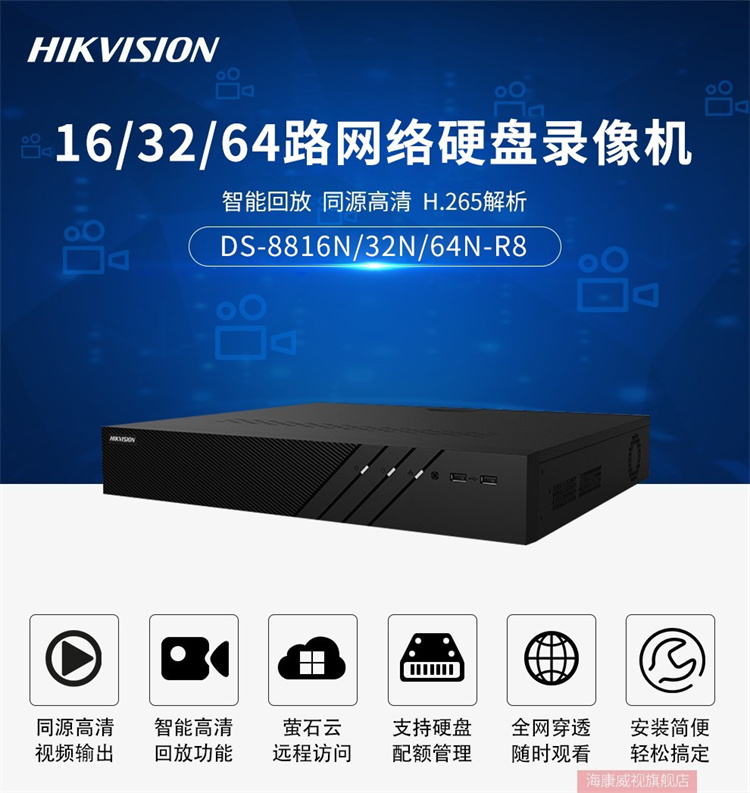 海康威视 DS-8864N-R8 (64路/8盘位)海康威视网络监控硬盘录像机NVR主机8盘位支持4K高清多路回放