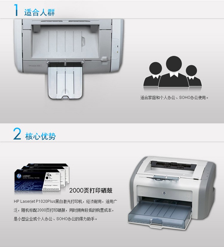 惠普(HP)黑白激光办公打印机1020plus