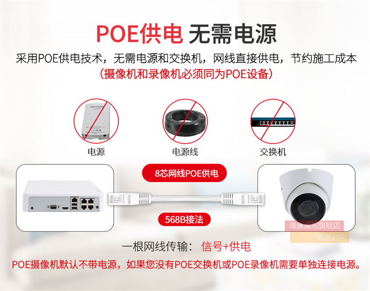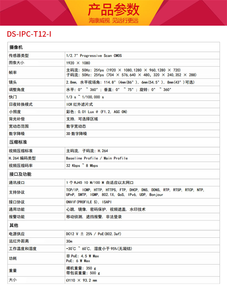 海康威视 T12-I 视频监控设备 海康威视网络监控摄像头200万高清红外夜视半球摄像机带POE 官方标配 2.8MM焦距