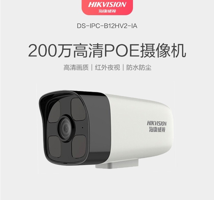 海康威视(HIKVISION)DS-IPC-B12HV2-IA 监控摄像机 POE供电/ 4MM焦距