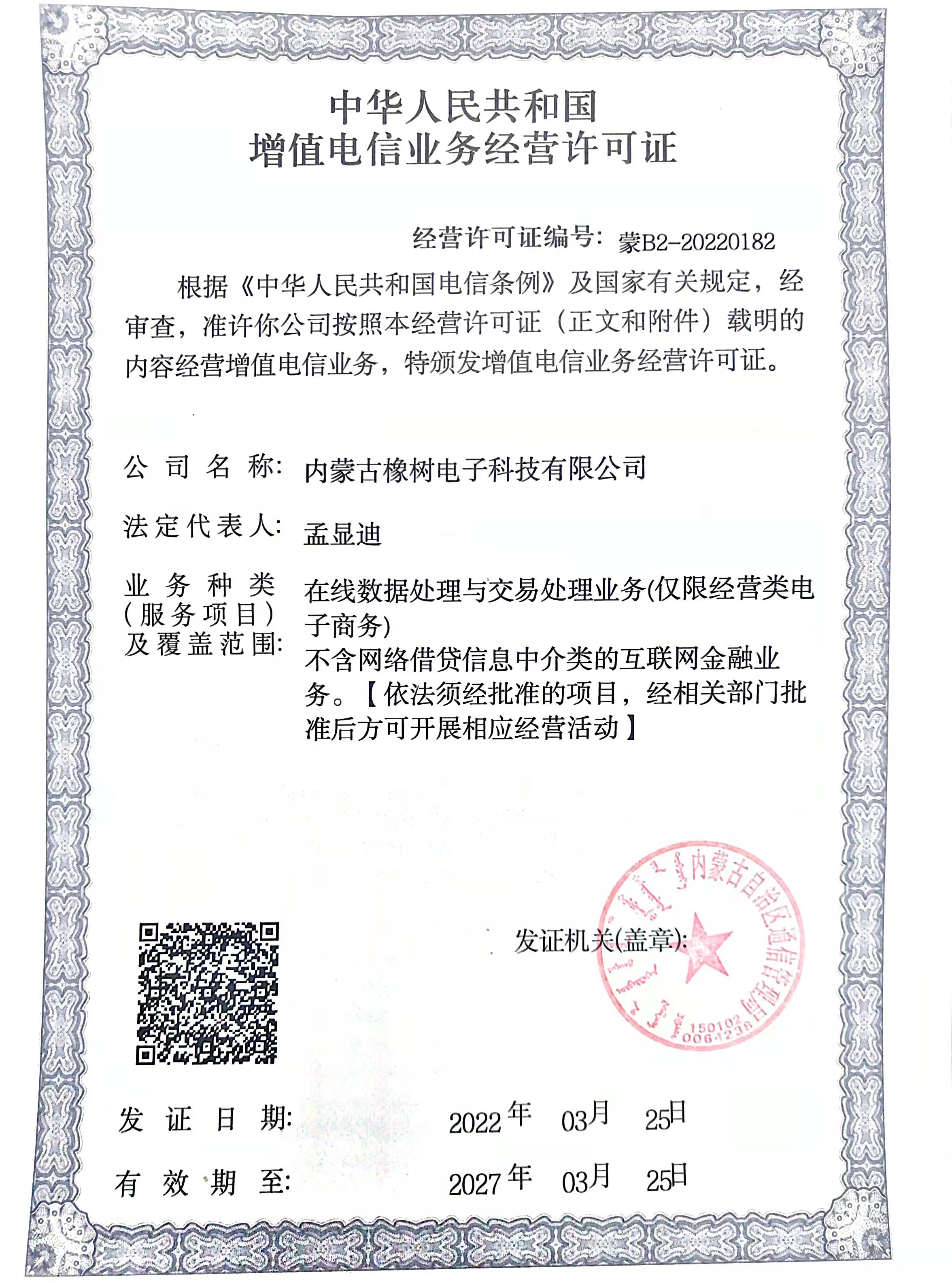 电信增值业务经营许可证